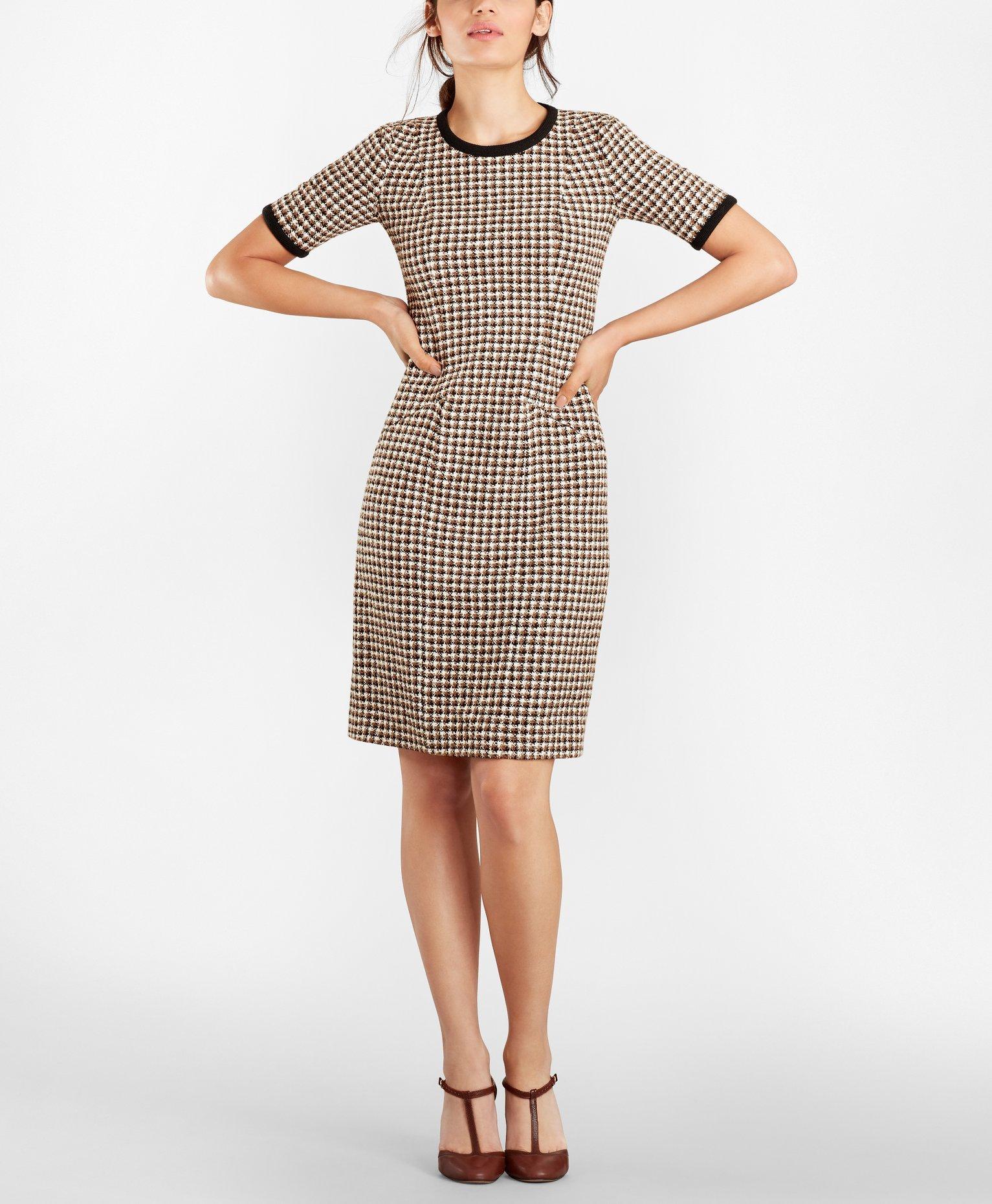 Petite Checked Tweed A Line Dress